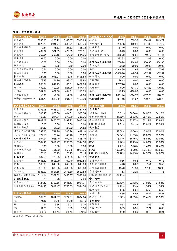 西南证券:华厦眼科(301267)-业绩符合预期,基础眼科持续增长.pdf