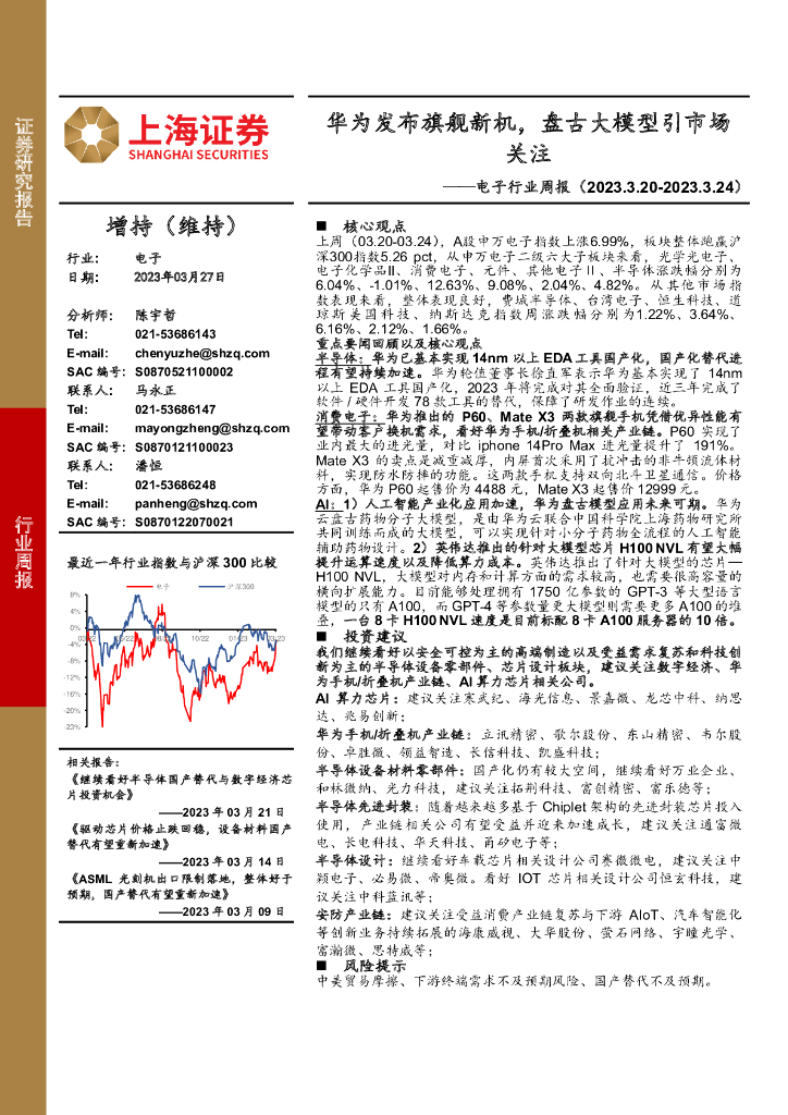 上海证券:电子行业周报:华为发布旗舰新机,盘古大模型引市场关注.pdf