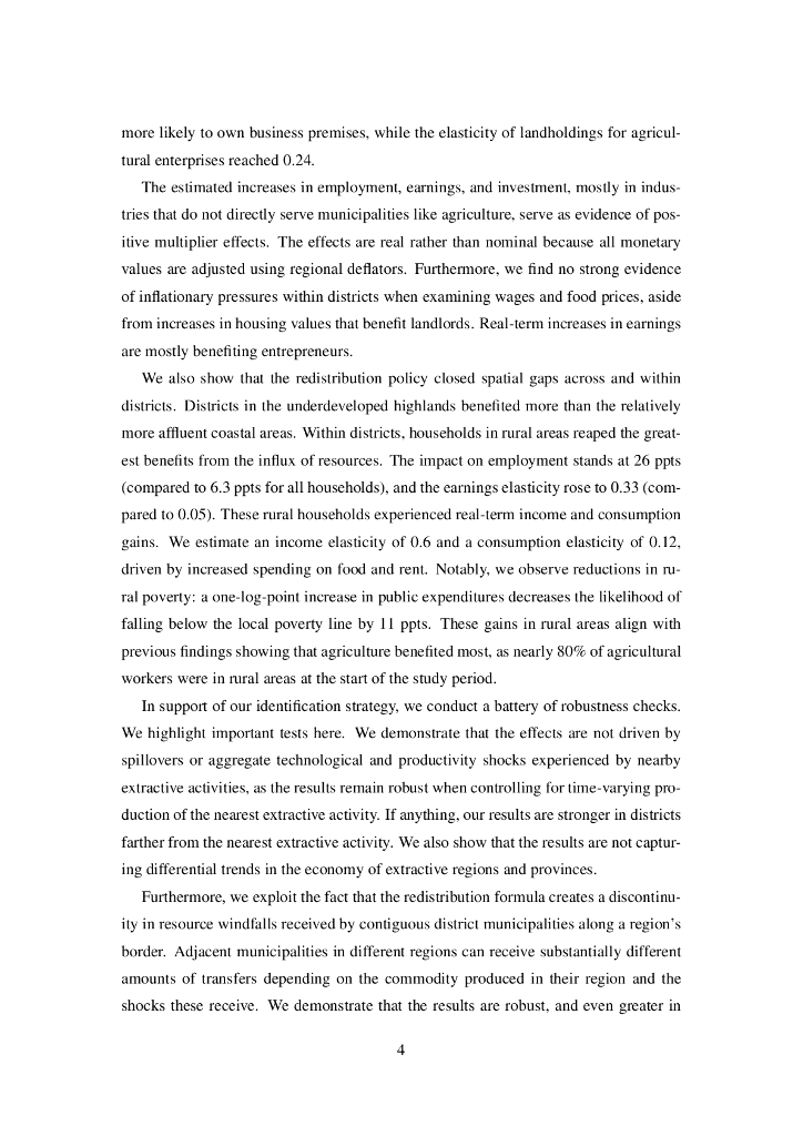 We use plausibly exogenous variation in the redistribution of natural resource tax revenues in Peru to study whether tran">