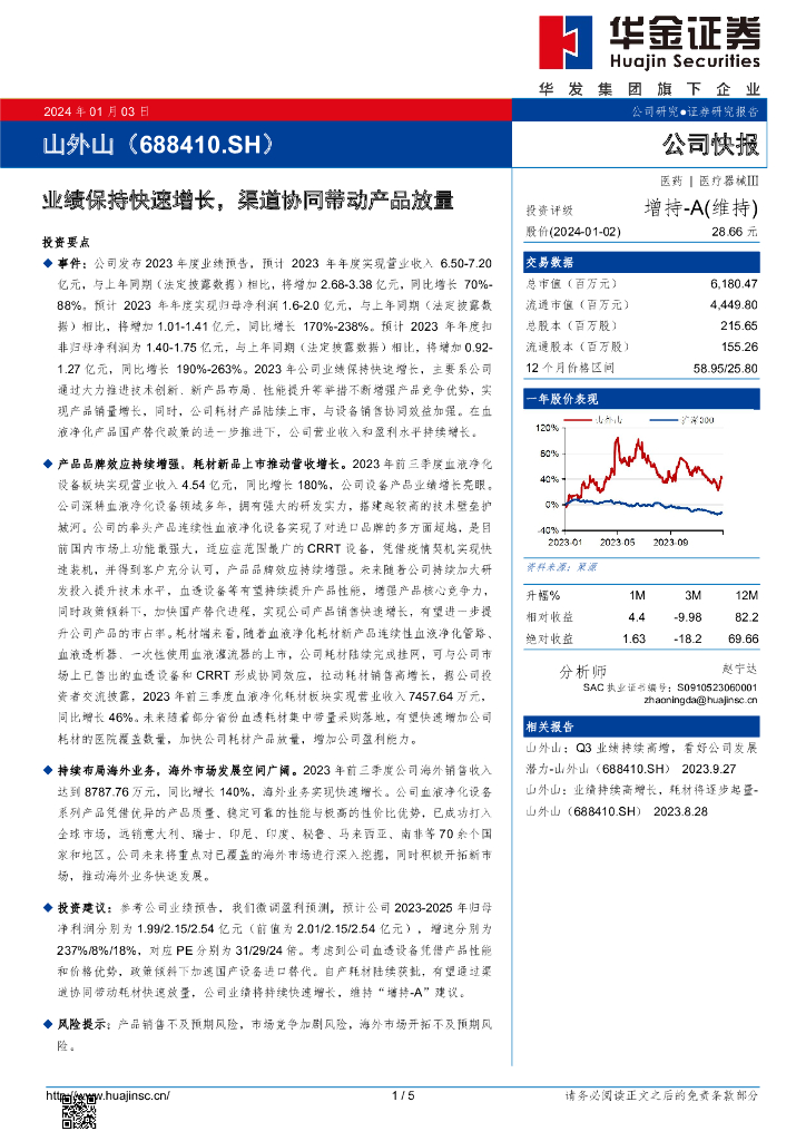 华金证券:山外山(688410)-业绩保持快速增长,渠道协同带动产品放量.pdf