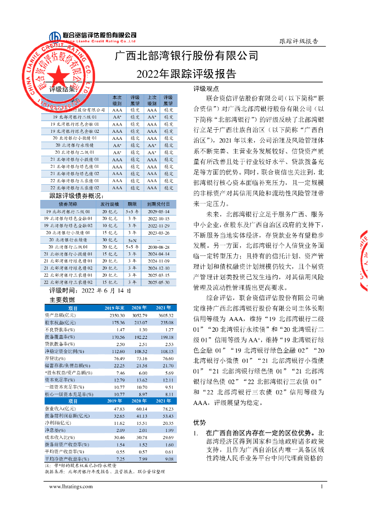 联合资信:广西北部湾银行股份有限公司2022年跟踪评级报告.pdf