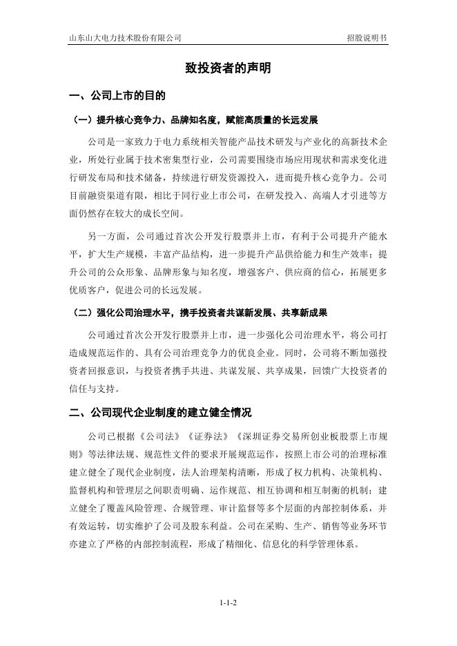 山东山大电力技术股份有限公司创业板IPO上市招股说明书.pdf