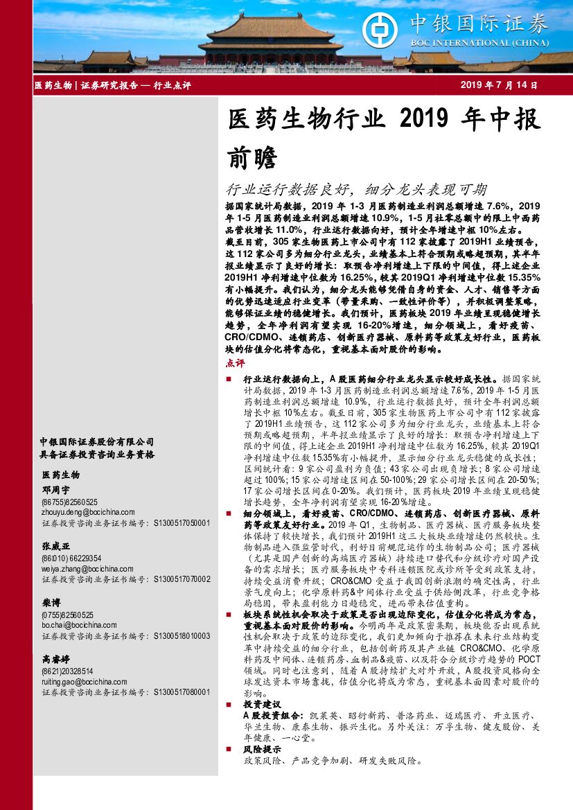 中银国际:医药生物行业2019年中报前瞻:行业运行数据良好,细分龙头表现可期.pdf