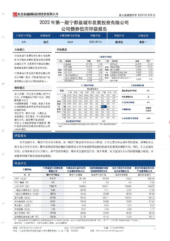 东方金诚:2022年第一期宁都县城市发展投资有限公司公司债券信用评级报告.pdf