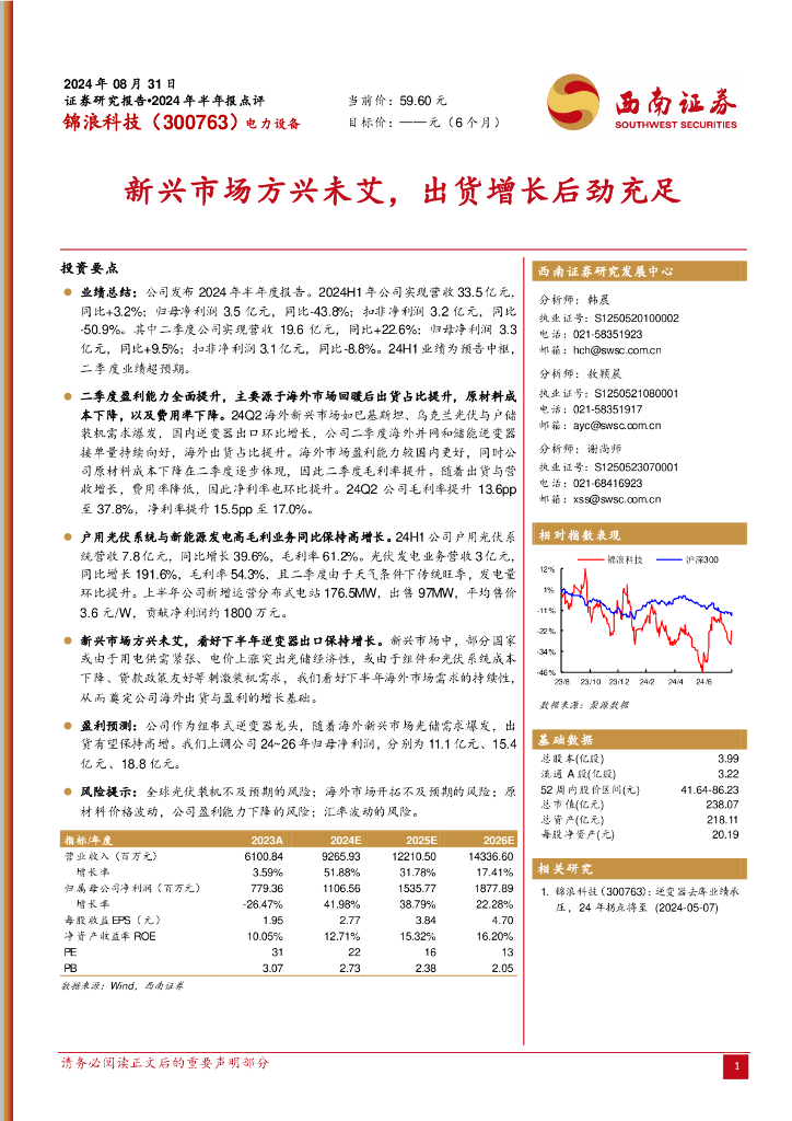 西南证券:锦浪科技(300763)-2024年半年报点评:新兴市场方兴未艾,出货增长后劲充足.pdf