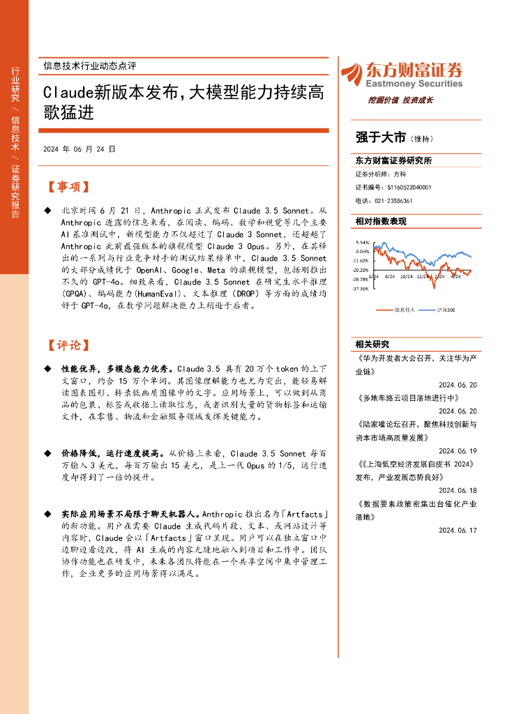 东方财富证券:信息技术行业动态点评:Claude新版本发布,大模型能力持续高歌猛进.pdf