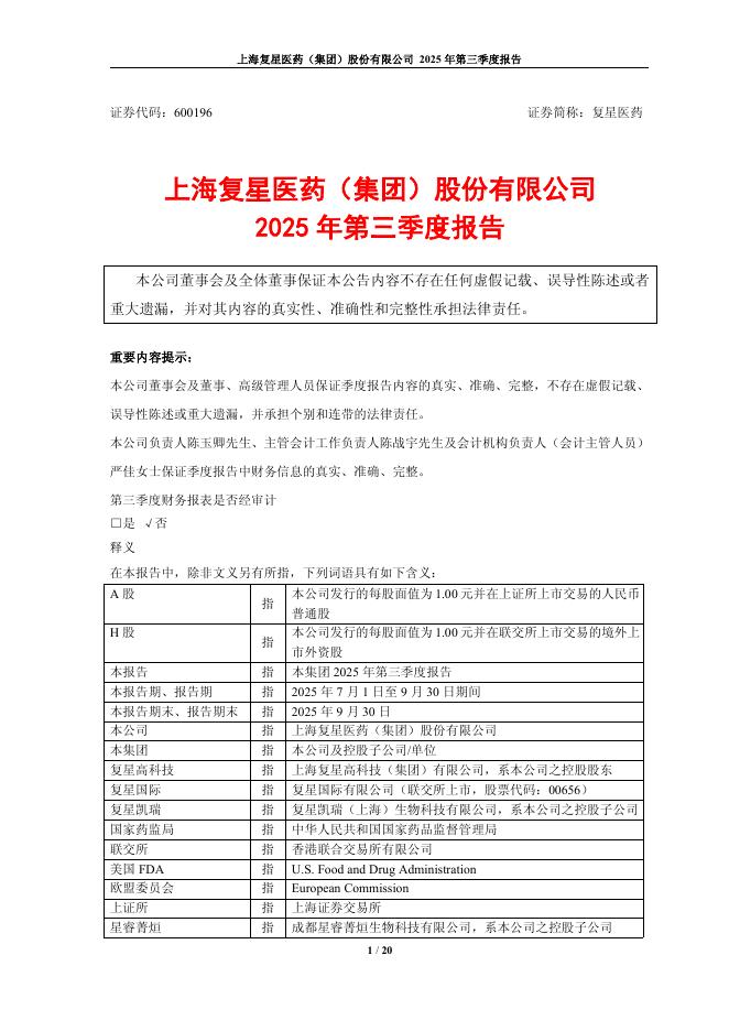 600196-复星医药:复星医药2025年第三季度报告.pdf
