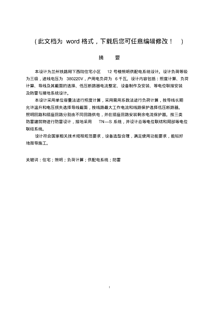 铁路局西院住宅小区12号楼照明供配电系统设计(毕业论文).pdf