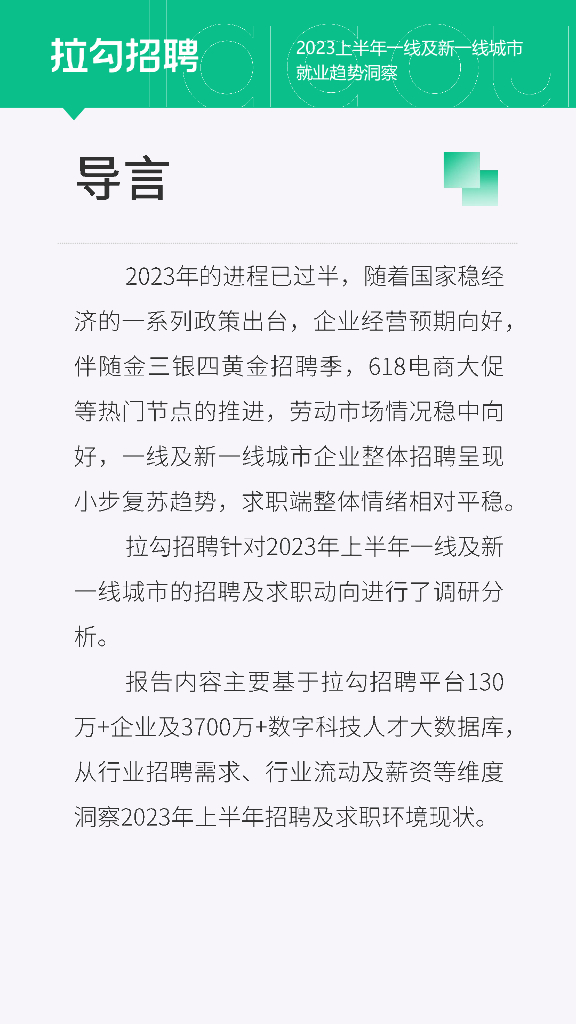 拉勾招聘:2023上半年一线及新一线城市就业趋势洞察报告.pdf