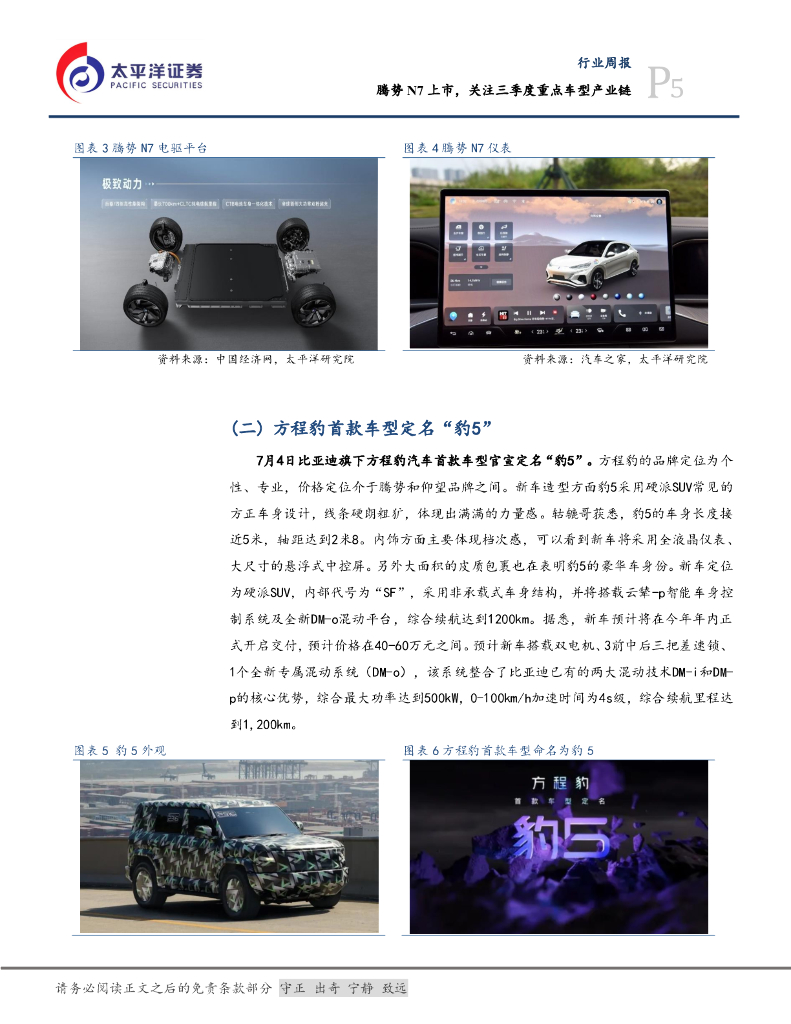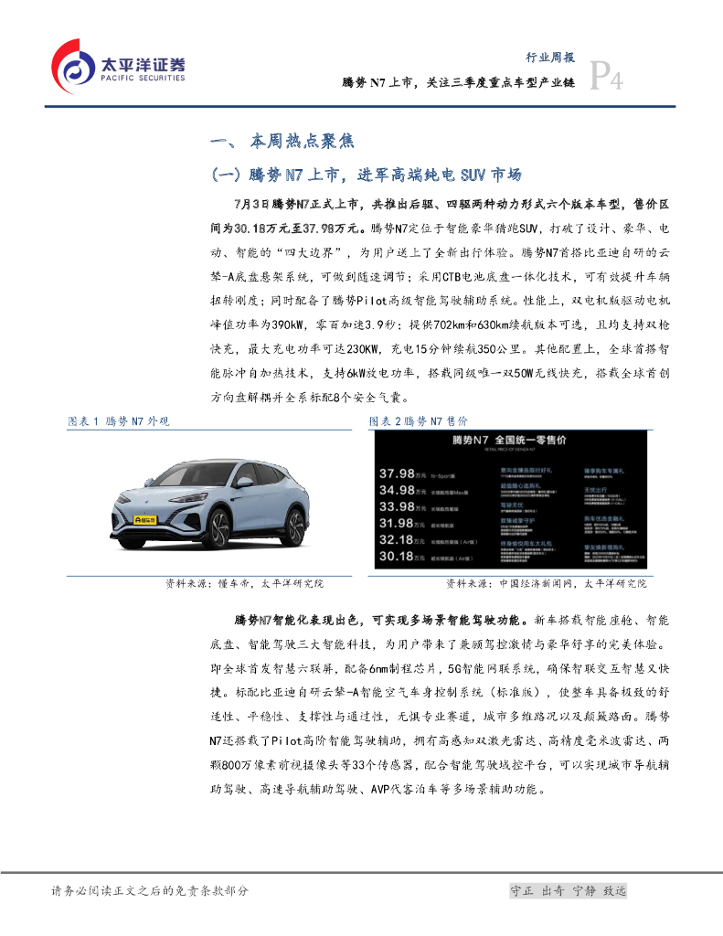 太平洋证券:汽车行业周报:腾势N7上市,关注三季度重点车型产业链.pdf