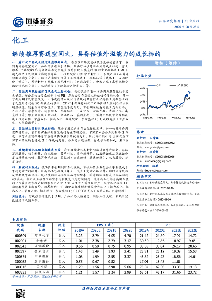 国盛证券:化工行业周报:继续推荐赛道空间大,具备估值外溢能力的成长标的.pdf