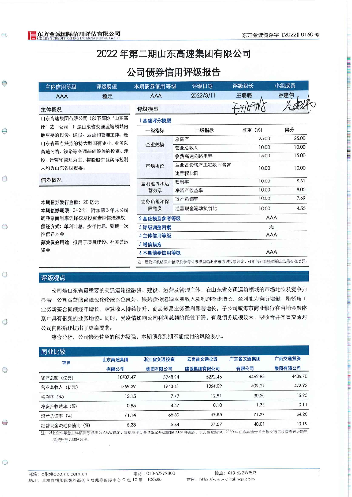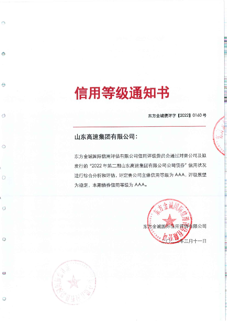 东方金诚:2022年第二期山东高速集团有限公司公司债券信用评级报告及跟踪评级安排.pdf