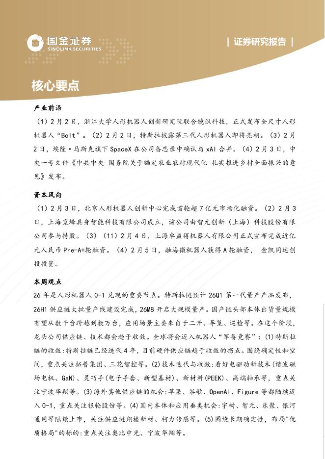 国金证券:高端装备制造产业研究周报:特斯拉三代机器人发布在即,智元举办全球首个机器人晚会.pdf