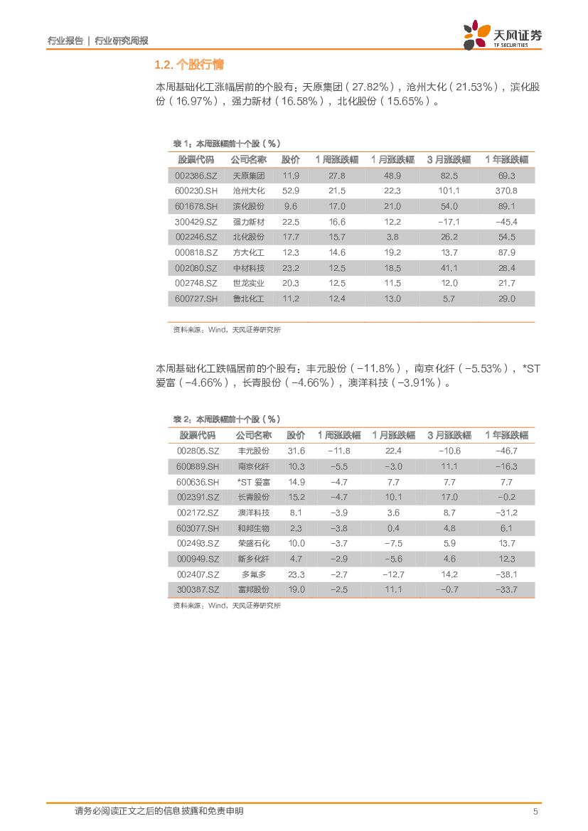天风证券:化工行业研究周报:TDI和环氧丙烷大幅涨价,己内酰胺和PTA价格小幅回落.pdf