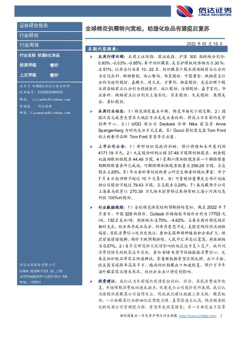 信达证券:纺织服装&化妆品行业周报:全球棉花供需转向宽松,纺服化妆品有望疫后复苏.pdf