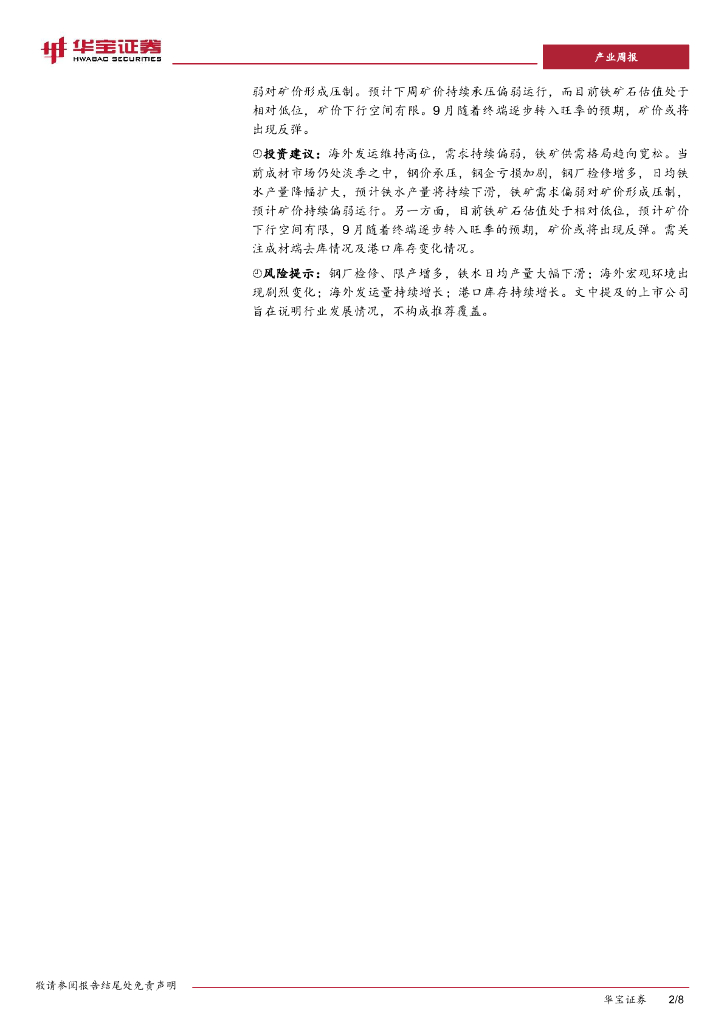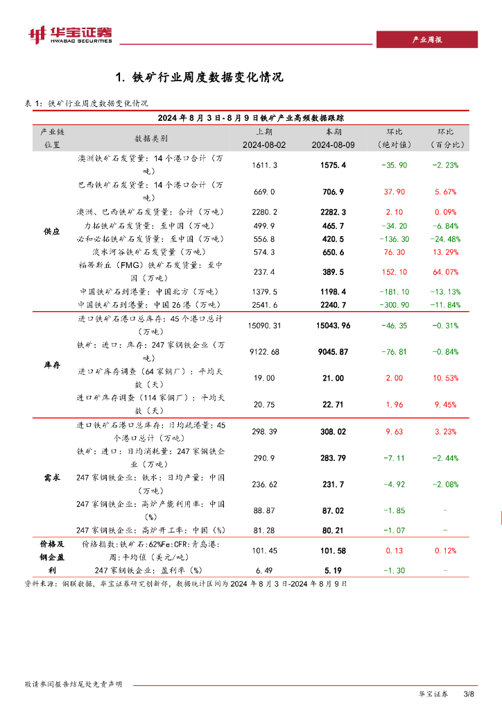 华宝证券:铁矿行业周度报告:日均铁水产量环比下滑2.44%,铁矿需求持续偏弱.pdf
