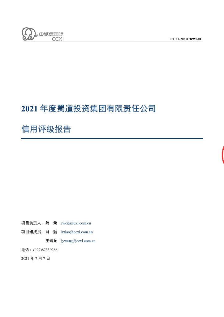 中诚信:蜀道投资集团有限责任公司2022年度第二期中期票据主体信用评级报告.pdf