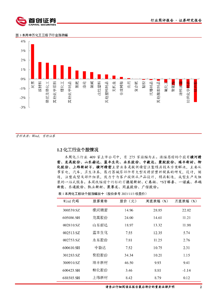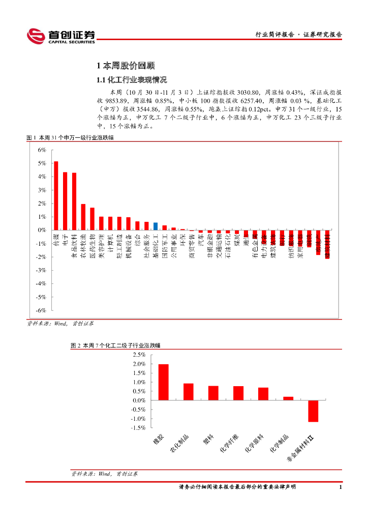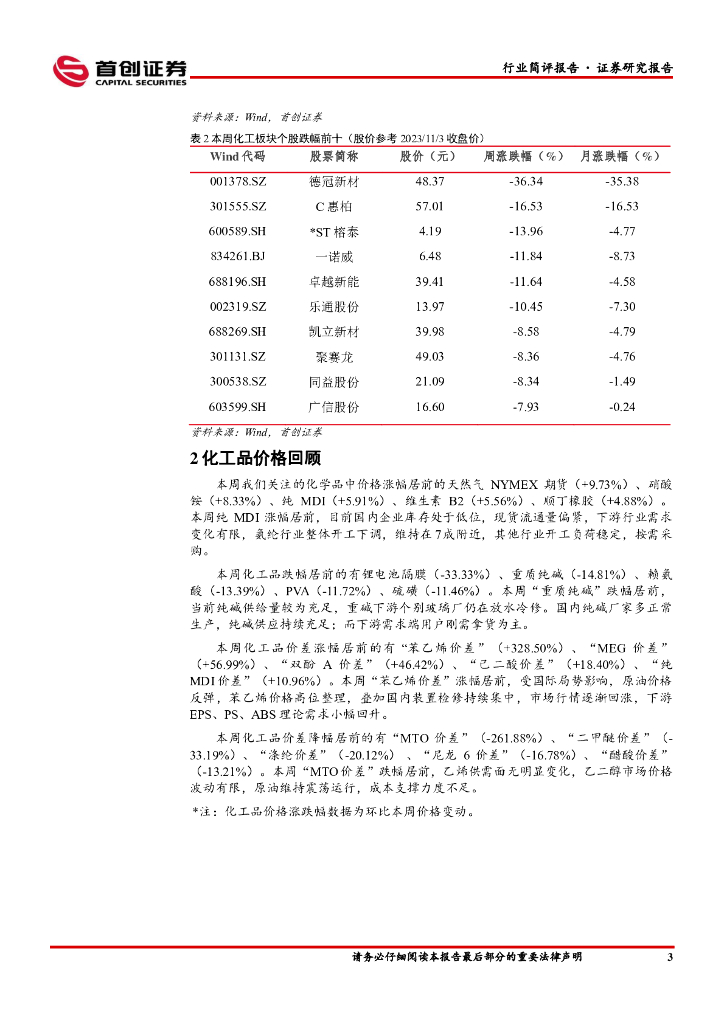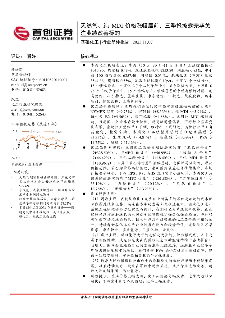 首创证券:基础化工行业简评报告:天然气、纯MDI价格涨幅居前,三季报披露完毕关注业绩改善标的.pdf