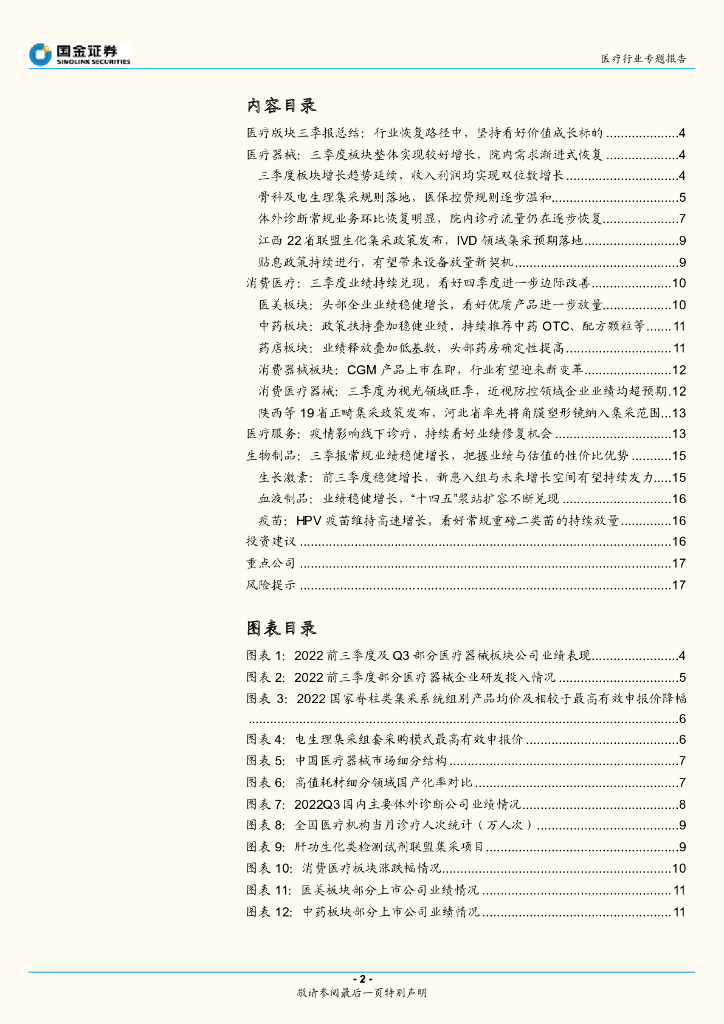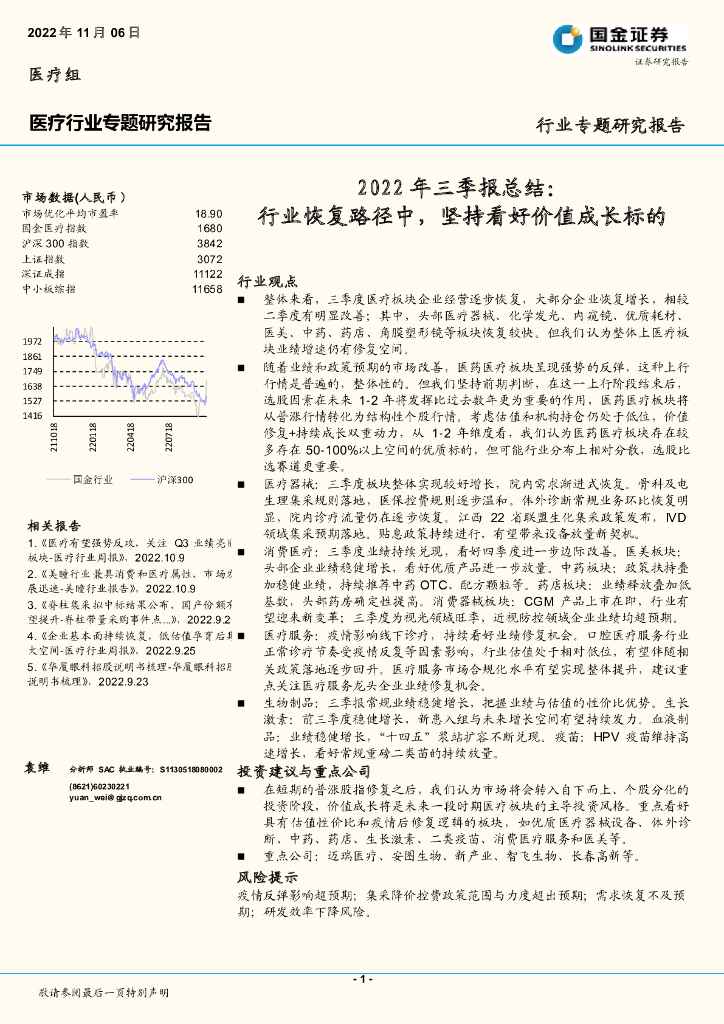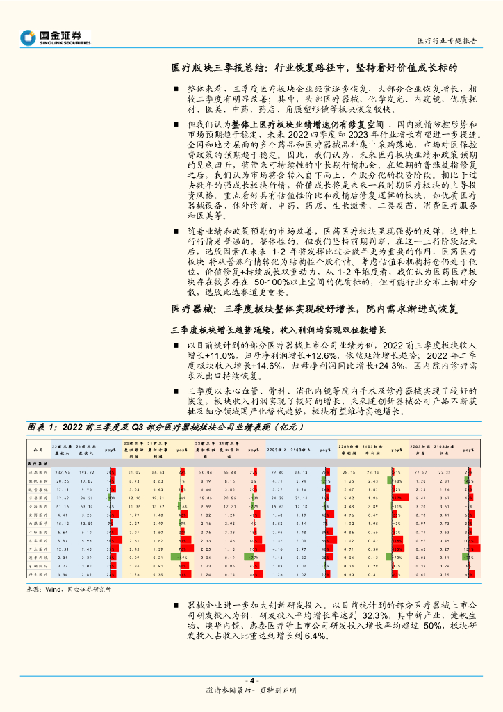 国金证券:医疗行业专题研究报告:2022年三季报总结:行业恢复路径中,坚持看好价值成长标的.pdf