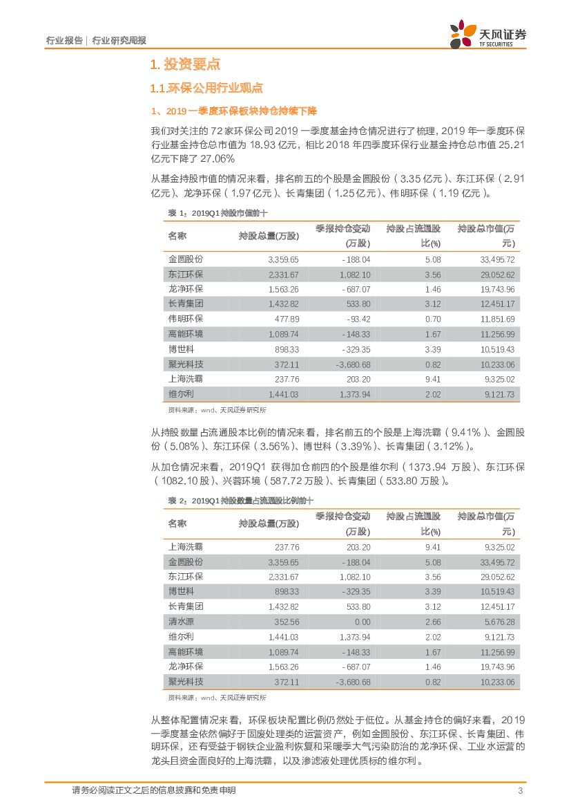 天风证券:公用事业行业研究周报:一季度环保持仓梳理,基金继续低配.pdf