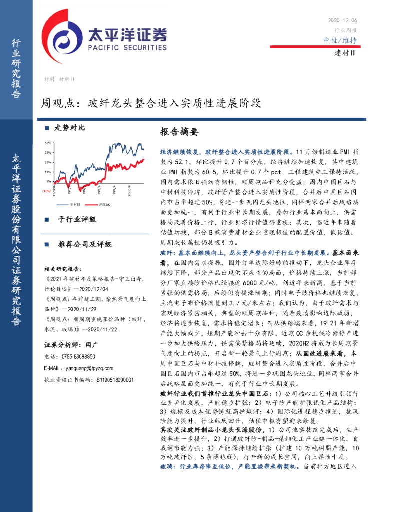太平洋证券:建材Ⅲ周观点:玻纤龙头整合进入实质性进展阶段.pdf
