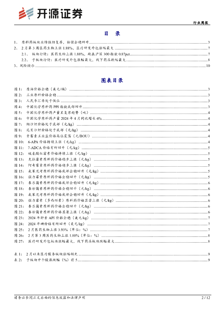 开源证券:医药生物行业周报:中国化学原料药行业整体呈现量升价稳的趋势,兽药原料药价格企稳回升.pdf