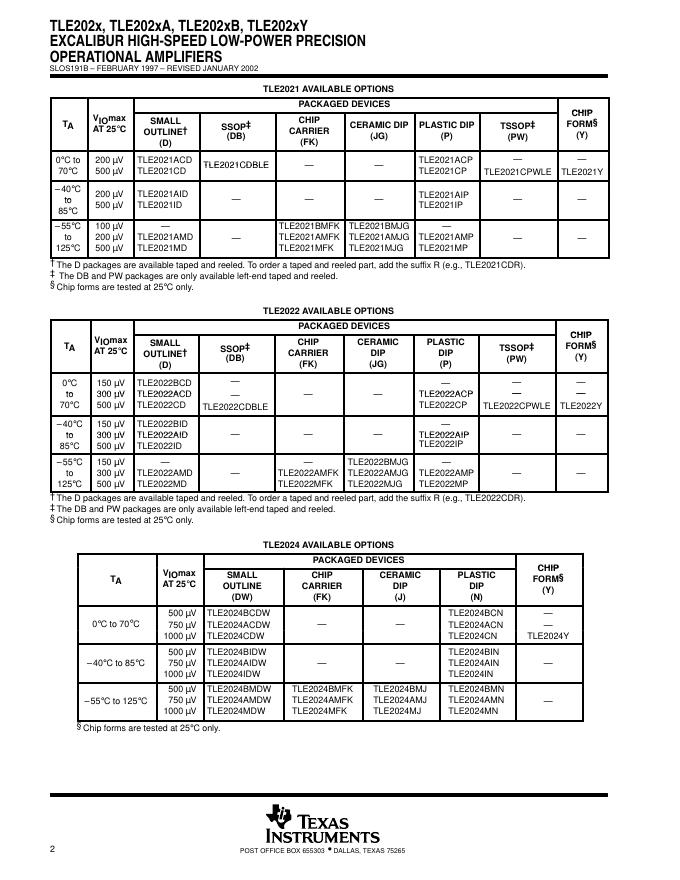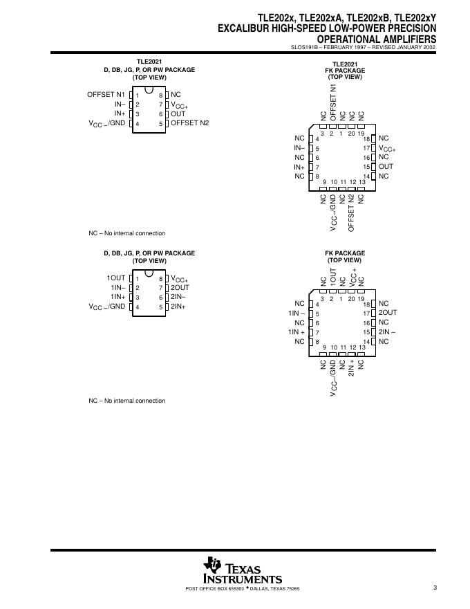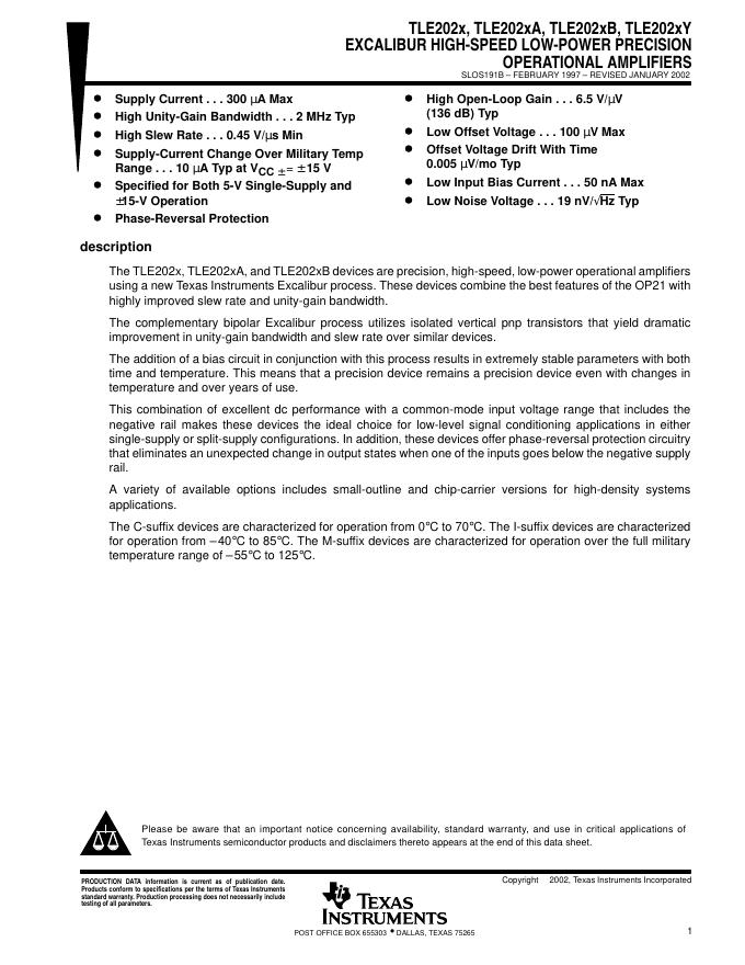 TEXAS INSTRUMENTS TLE202x, TLE202xA, TLE202xB, TLE202xY 数据手册.pdf