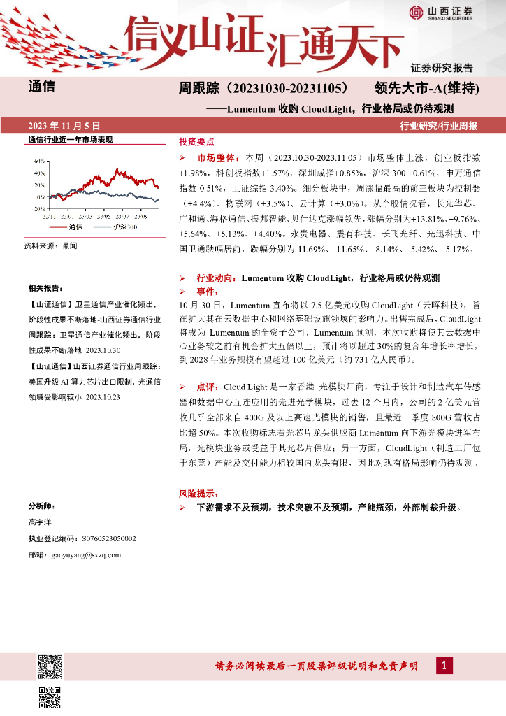 山西证券:通信周跟踪:Lumentum收购CloudLight,行业格局或仍待观测.pdf