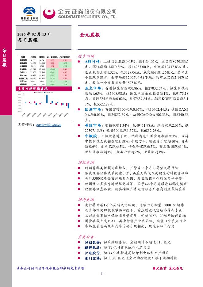 金元证券:金元晨报-260213.pdf