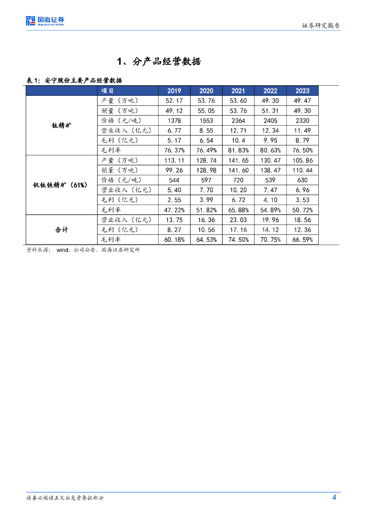 国海证券:安宁股份(002978)-钛精矿景气延续,矿材一体化战略有序推进2023年年报及2024年一季报点评报告.pdf