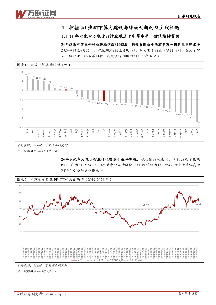 万联证券:2024年中期电子行业投资策略报告:AI浪潮迭起,智能触手可及.pdf