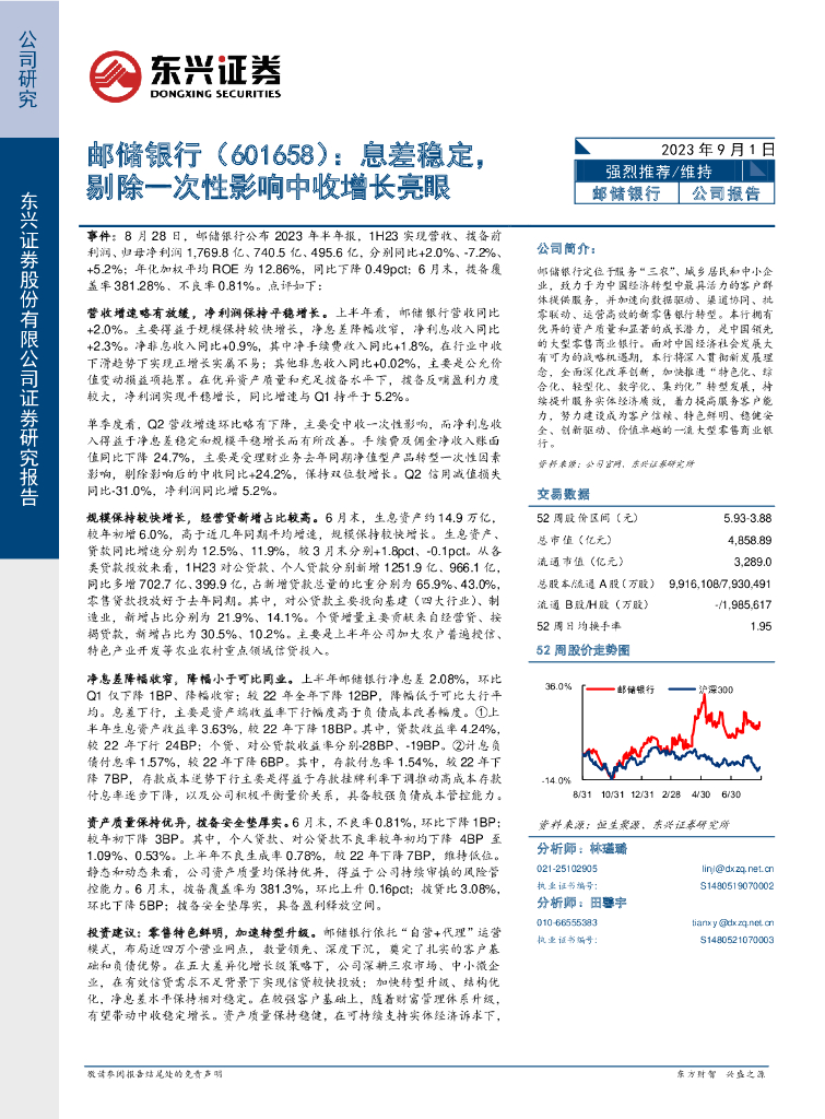 东兴证券:邮储银行(601658)-息差稳定,剔除一次性影响中收增长亮眼.pdf