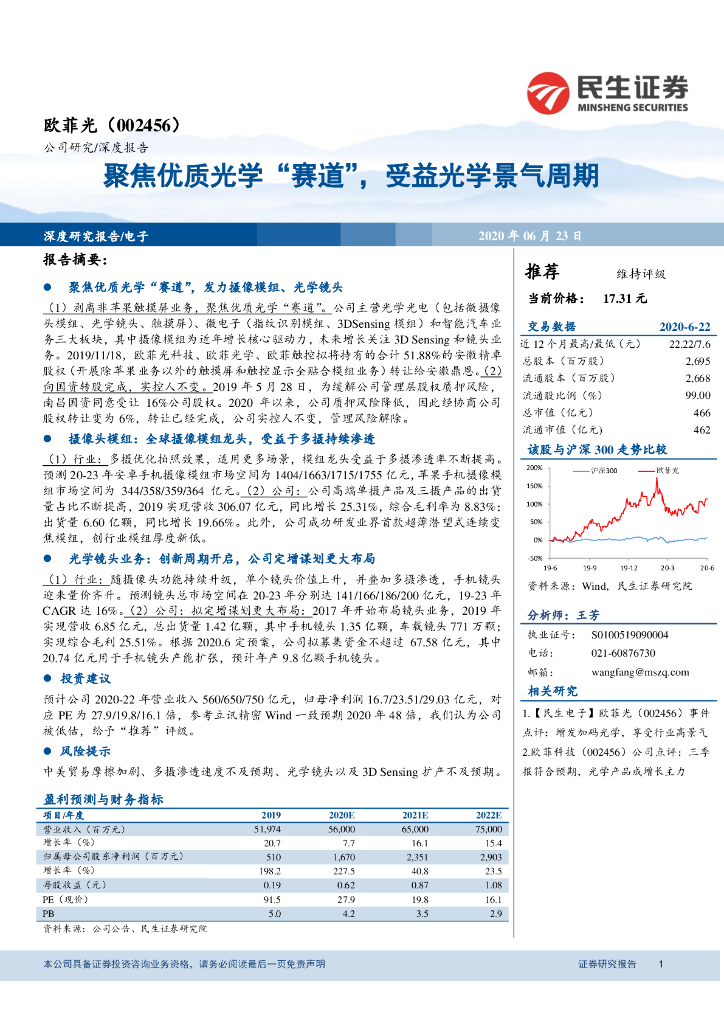 民生证券:欧菲光(002456)-聚焦优质光学“赛道”,受益光学景气周期.pdf