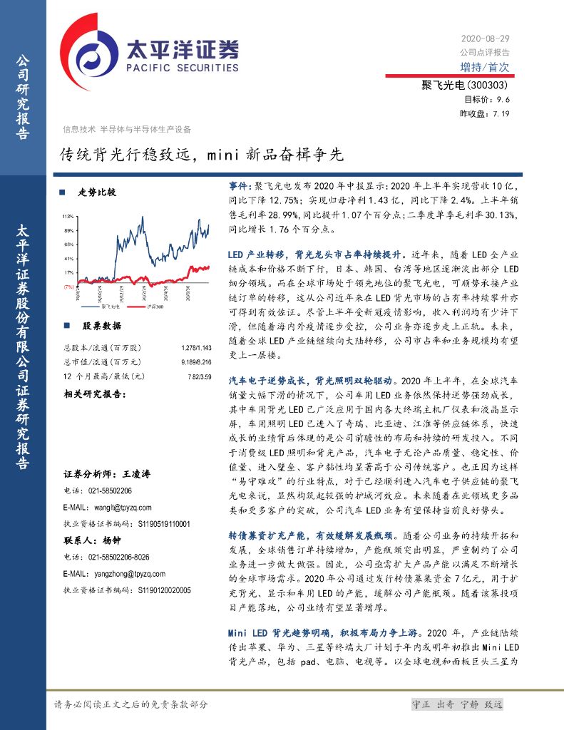 太平洋证券:聚飞光电(300303)-传统背光行稳致远,mini新品奋楫争先.pdf