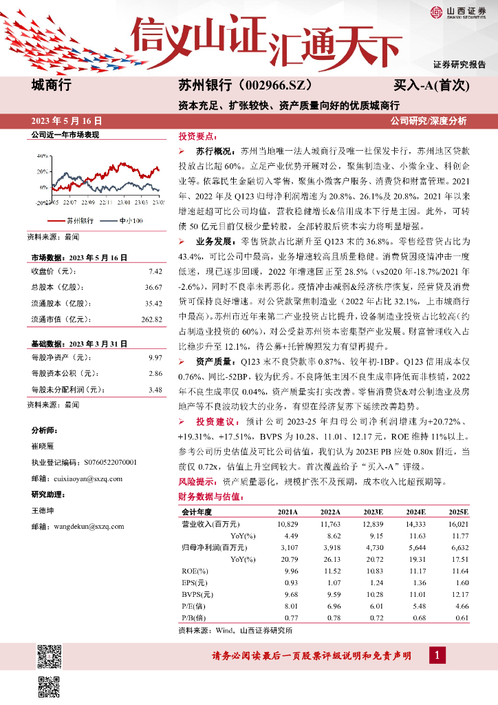 山西证券:苏州银行(002966)-资本充足、扩张较快、资产质量向好的优质城商行.pdf