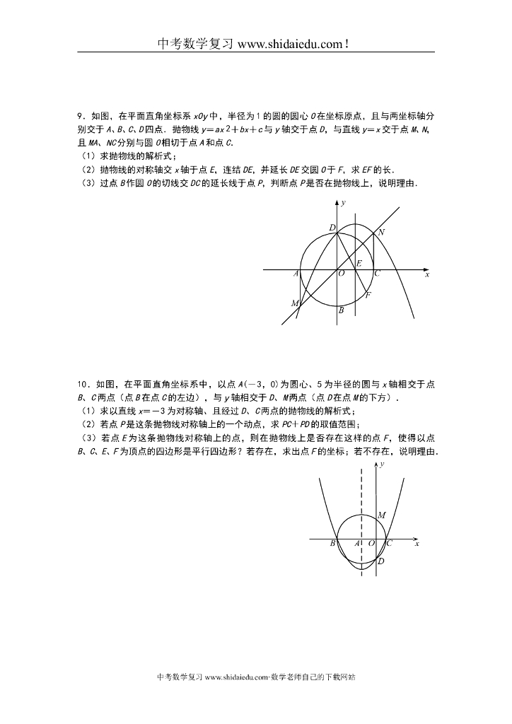 与圆有关地中考数学压轴题精选.doc