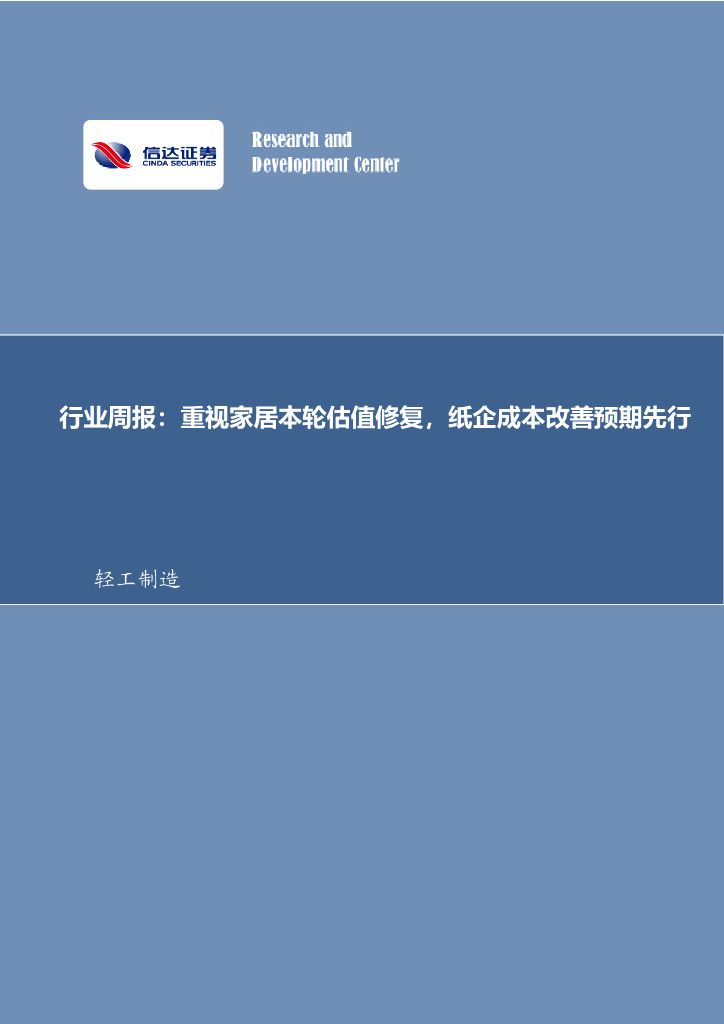 信达证券:轻工制造行业周报:重视家居本轮估值修复,纸企成本改善预期先行.pdf