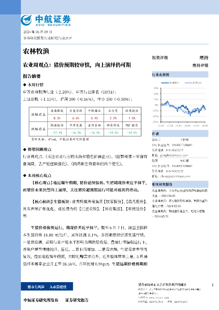 中航证券:农业周观点:猪价预期较审慎,向上演绎仍可期.pdf
