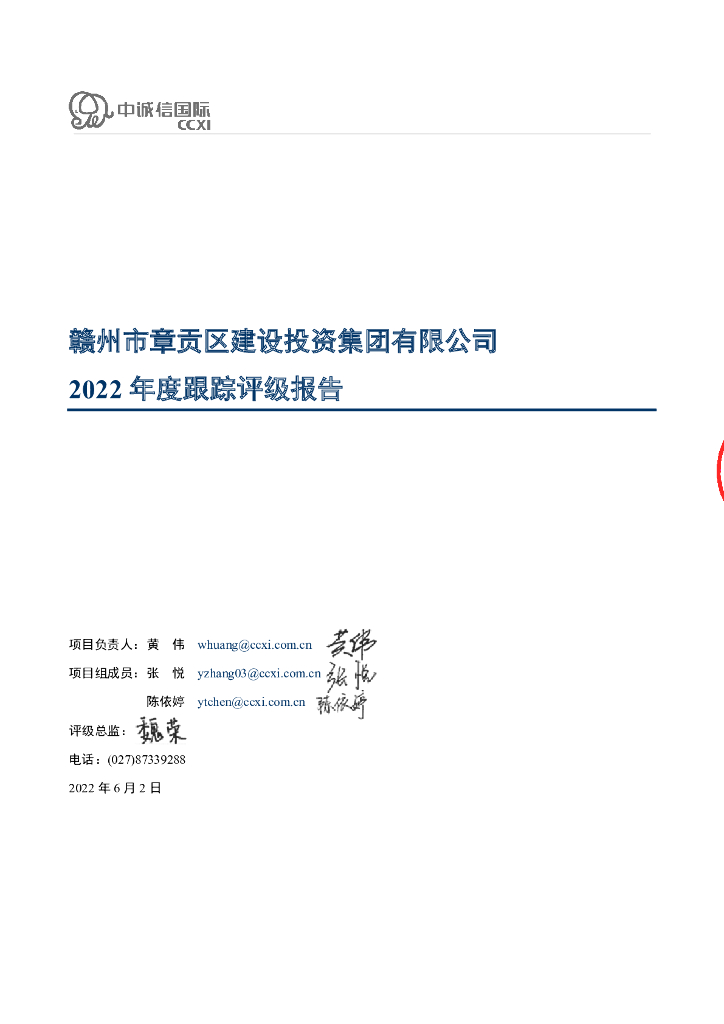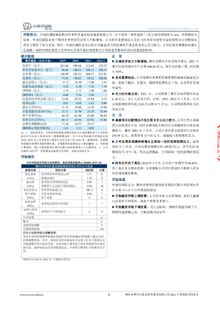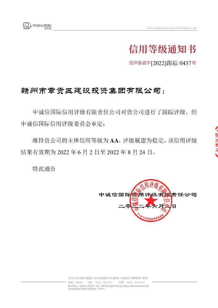 中诚信:赣州市章贡区建设投资集团有限公司2021年度第一期中期票据2022年度跟踪评级报告.pdf