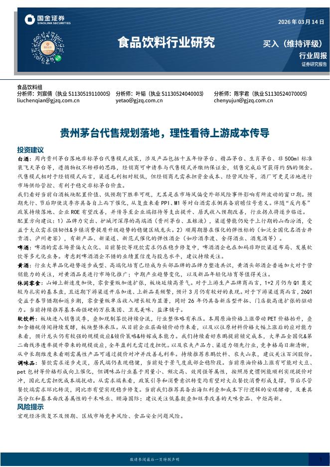 国金证券:食品饮料行业周报:贵州茅台代售规划落地,理性看待上游成本传导.pdf