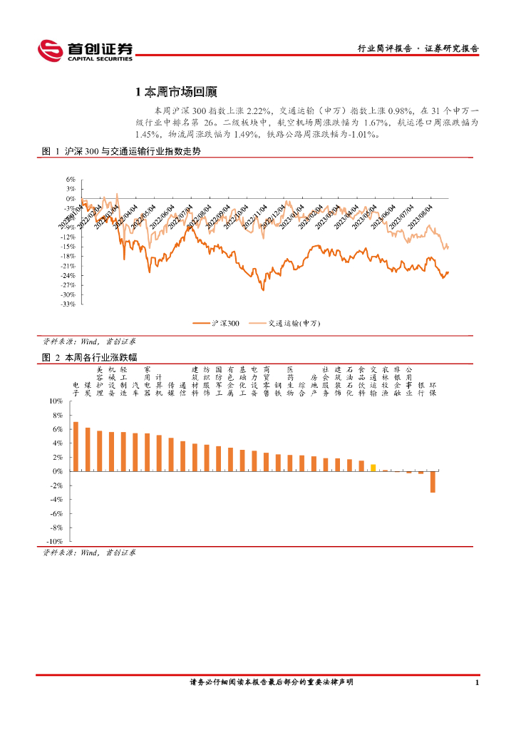 首创证券:交通运输周报:暑运收官积极部署迎接新航季,快递公司业绩全线回暖.pdf