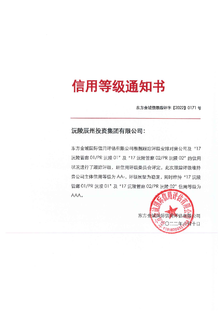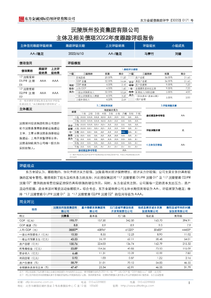 东方金诚:沅陵辰州投资集团有限公司主体及相关债项2022年度跟踪评级报告.pdf