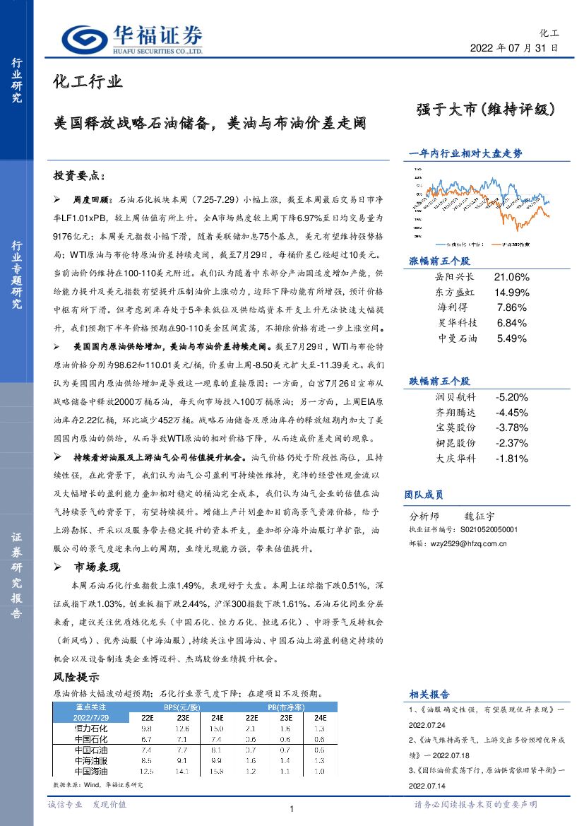 华福证券:化工行业:美国释放战略石油储备,美油与布油价差走阔.pdf