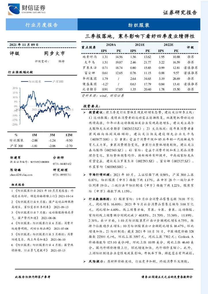 财信证券:纺织服装行业月度报告:三季报落地,寒冬影响下看好四季度业绩弹性.pdf