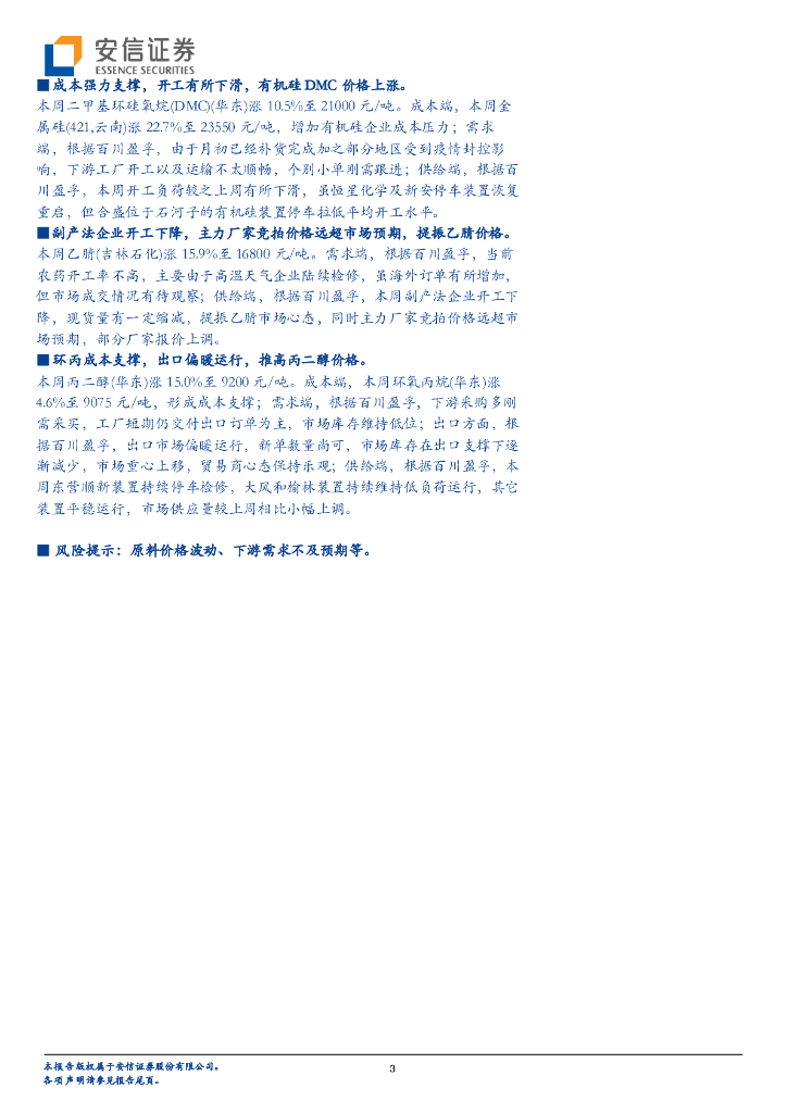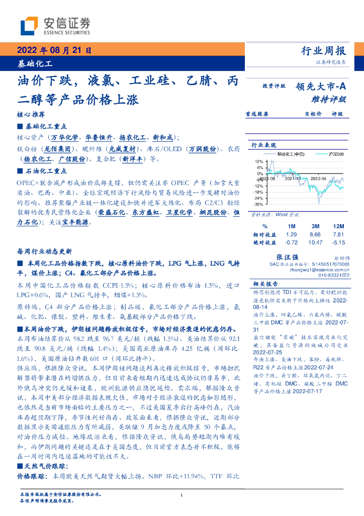 安信证券:基础化工行业周报:油价下跌,液氯、工业硅、乙腈、丙二醇等产品价格上涨.pdf