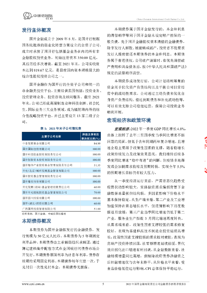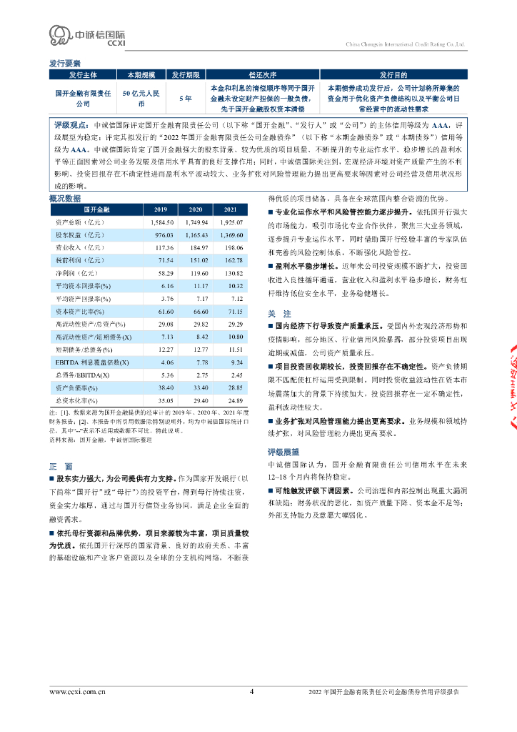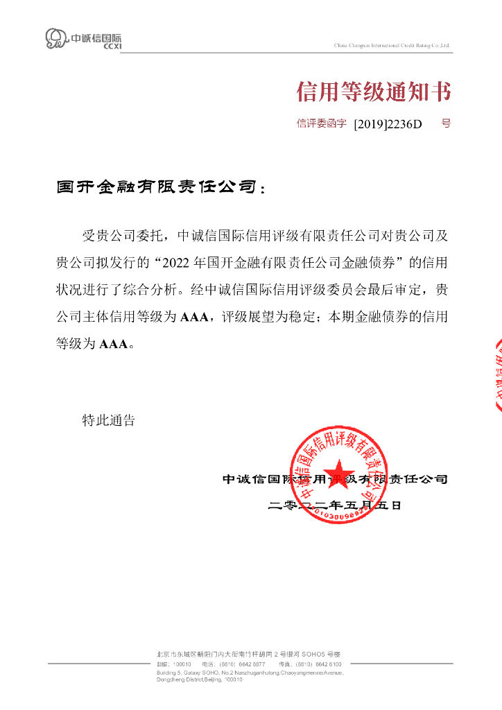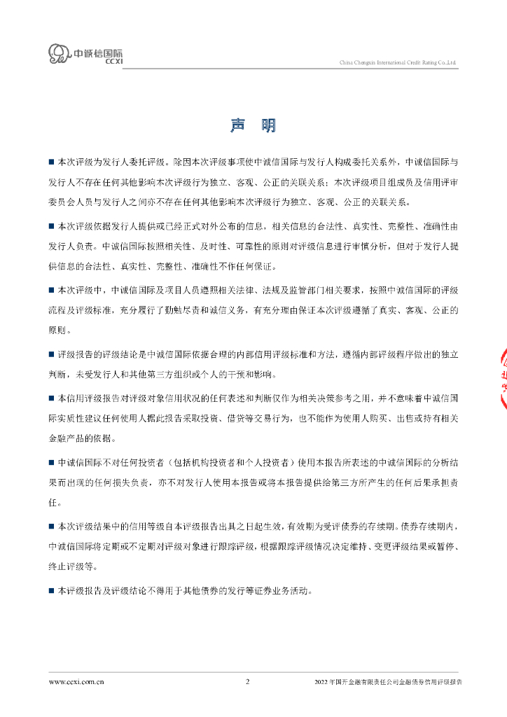 中诚信:2022年国开金融有限责任公司金融债券信用评级报告及跟踪评级安排的说明.pdf