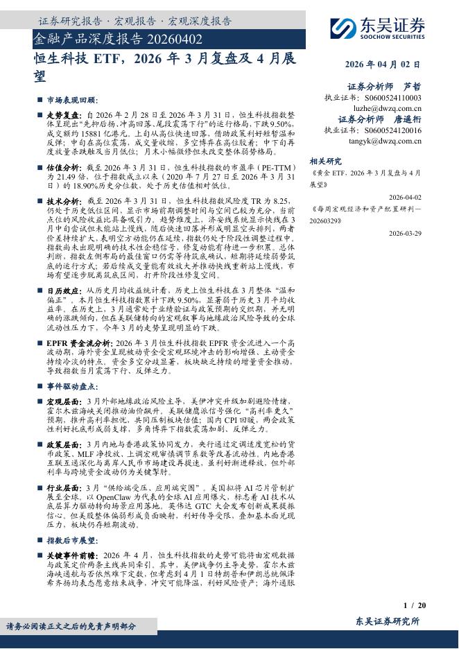 东吴证券:金融产品深度报告:恒生科技ETF,2026年3月复盘及4月展望-260403.pdf