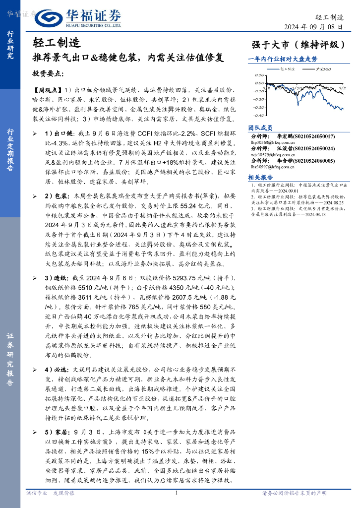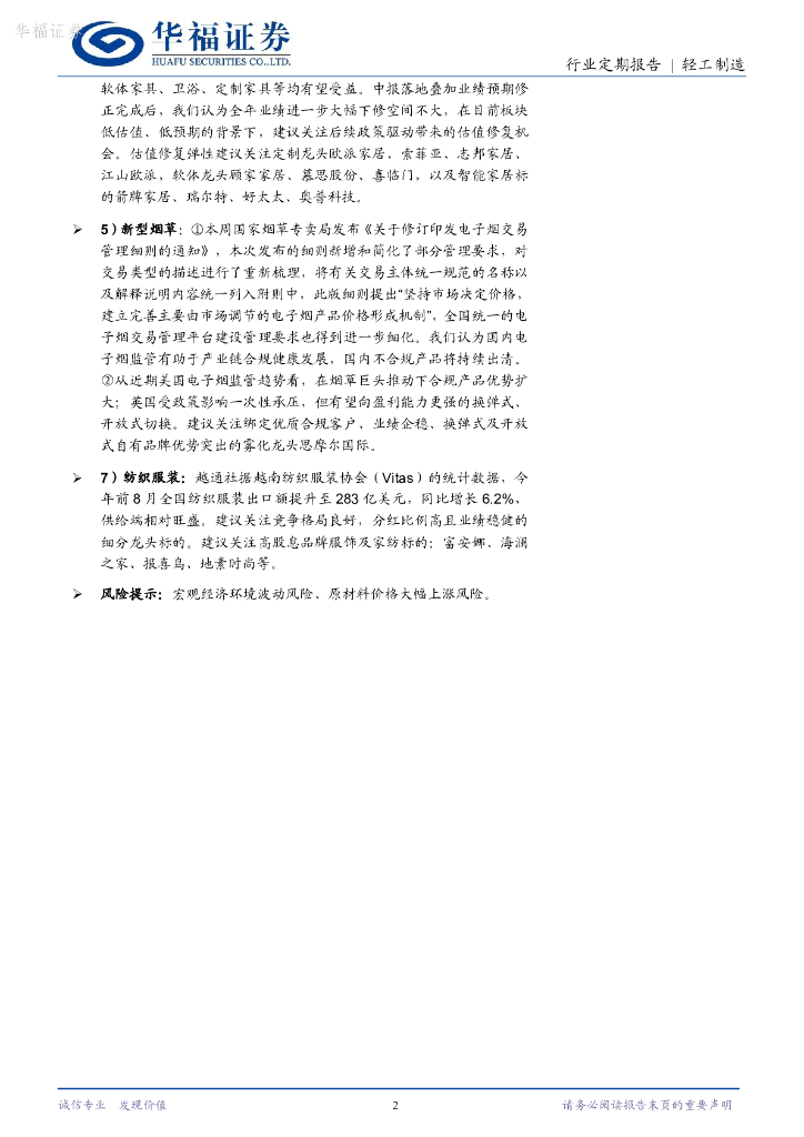 华福证券:轻工制造行业定期报告:推荐景气出口&稳健包装,内需关注估值修复.pdf