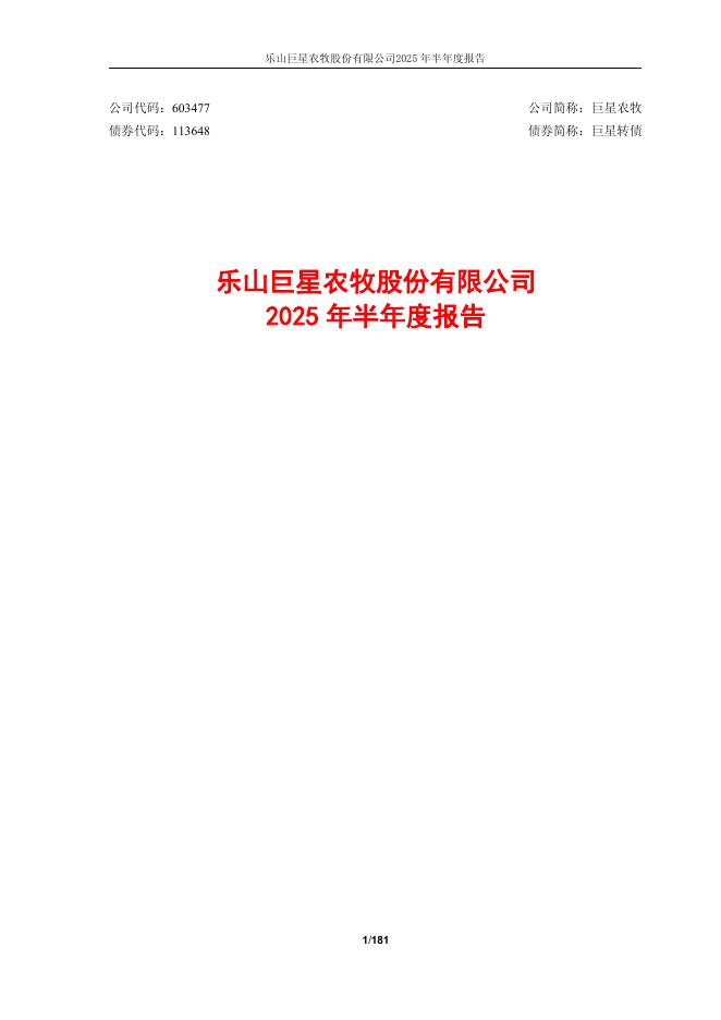 113648-巨星农牧:乐山巨星农牧股份有限公司2025年半年度报告.pdf