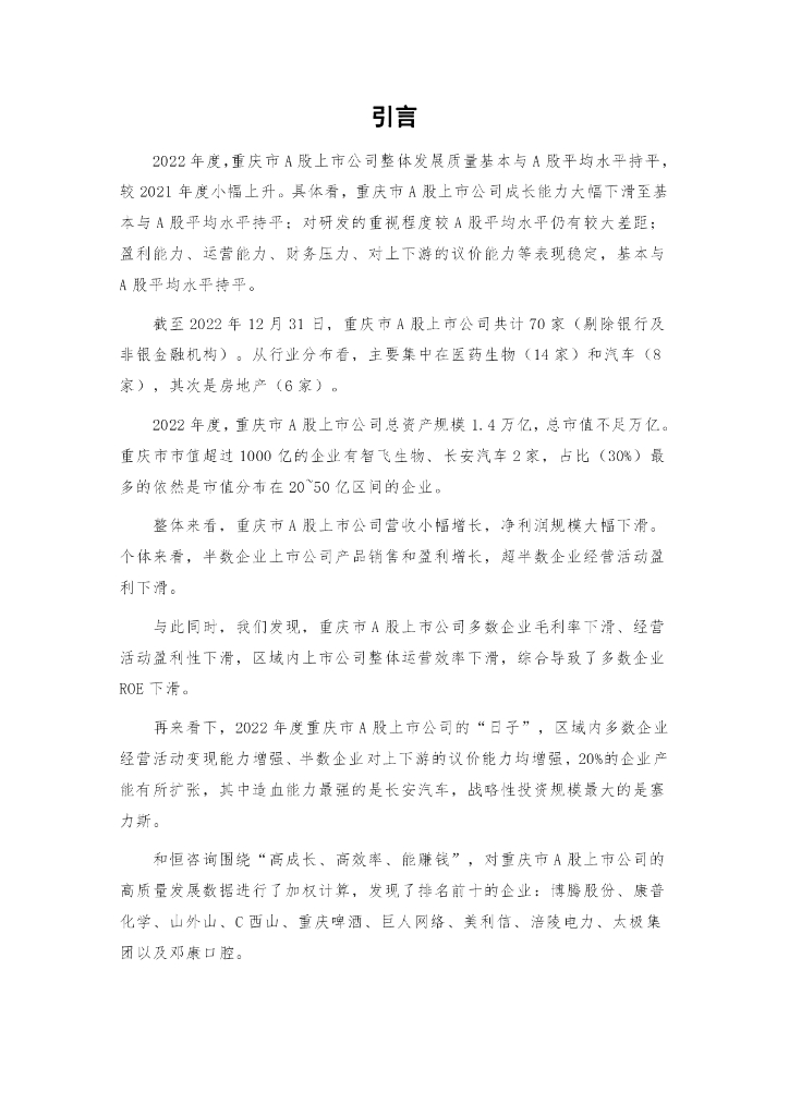 和恒咨询:重庆市A股上市公司高质量发展报告(2022年报).pdf